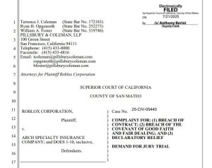 Pillsbury & Coleman LLP recently filed a cyber insurance bad faith action on behalf of its client, Roblox Corporation, against insurance carrier Arch Specialty Insurance Company. The complaint seeks to recover unpaid business interruption losses from Arch resulting from a cyber event that interrupted Roblox’s online social gaming platform for more than 3-days. Arch embarked on a campaign to undermine Roblox’s insurance claim, refused to accept Roblox’s losses, and declined to pay the full value of its policy. We disputed Arch’s position and filed suit asserting claims against Arch for breach of contract, bad faith, and punitive damages. A copy of the complaint can be found here, or click the image below.